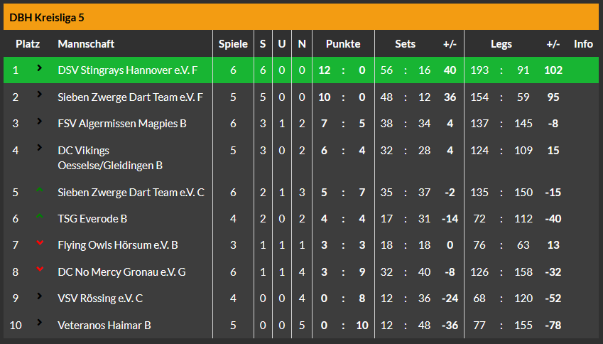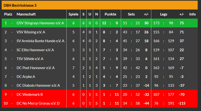 Das B-Team startete als Erstes gegen den TuS Lühnde DART. Erneut lief nicht viel zusammen, niemand bei den Rochen erreichte Normalform und so stand am Ende ein heftiges Gewitter⛈ in Form einer 5:7 Niederlage. Tzmarty mit einem 70er Bullfinish und Thomas mit einem 111er Highfinish, das war's auch schon an Highlights.