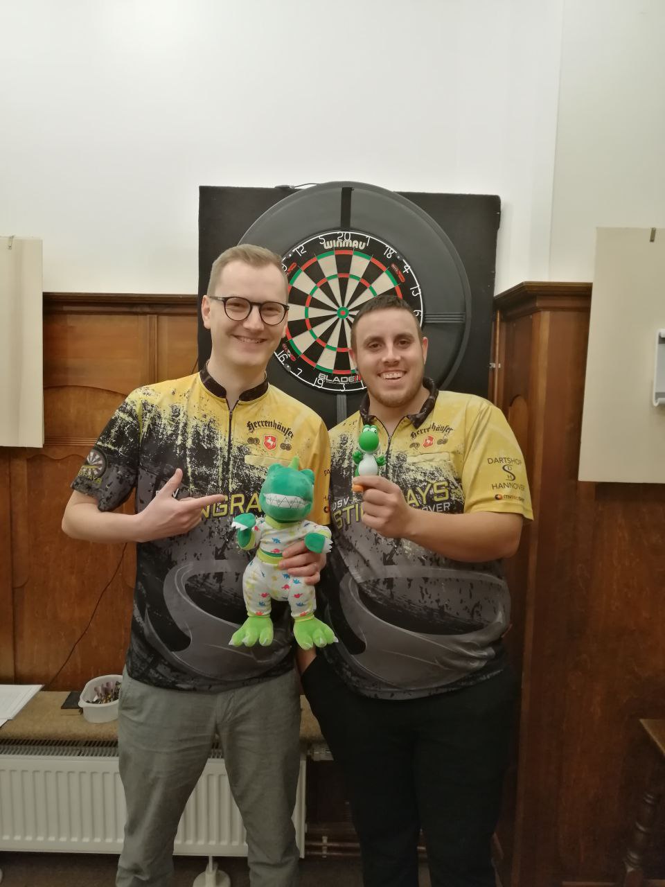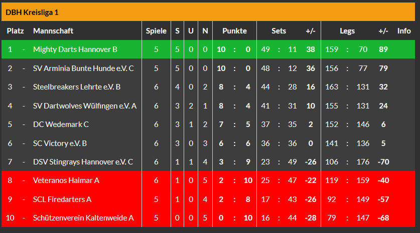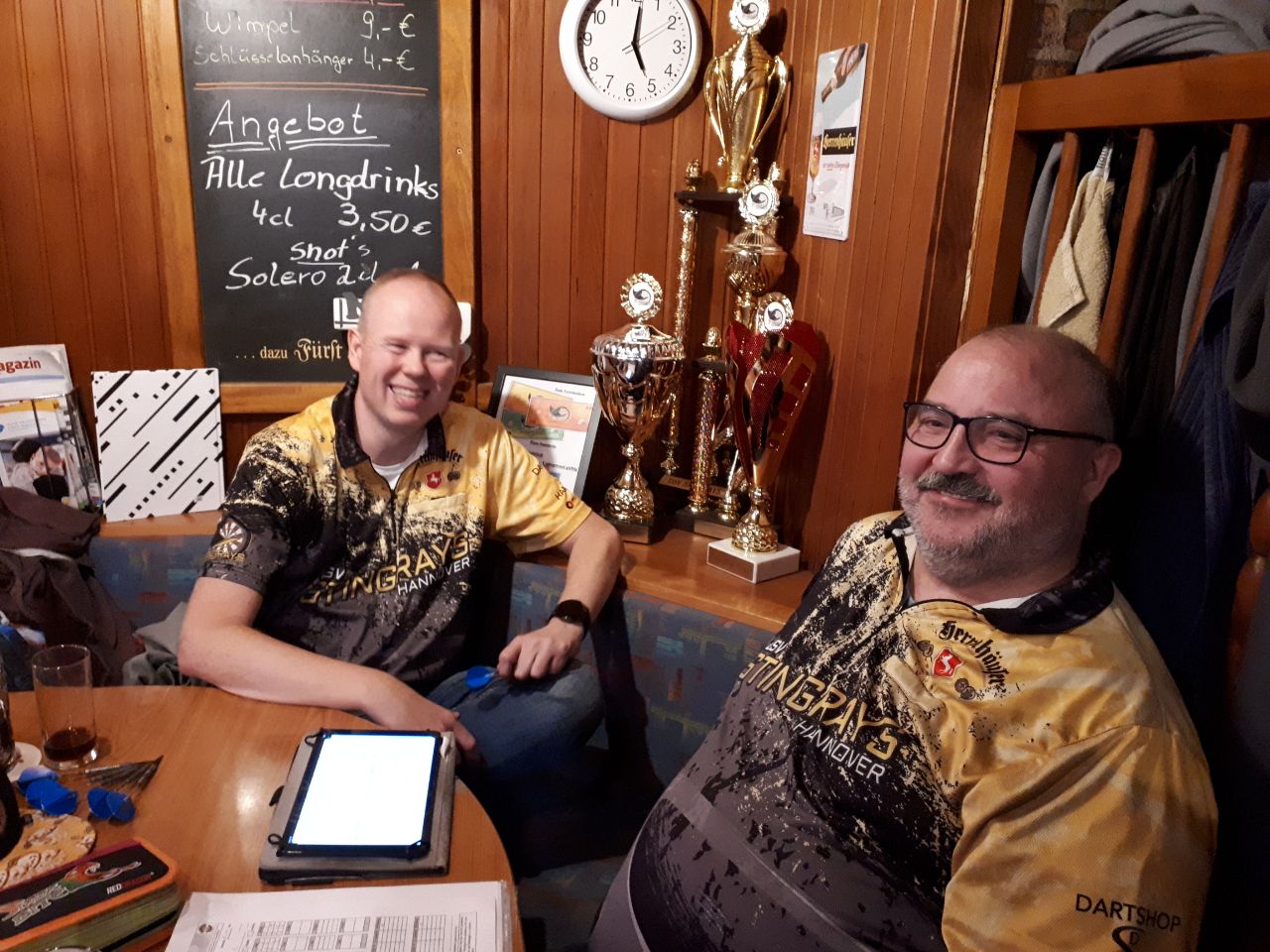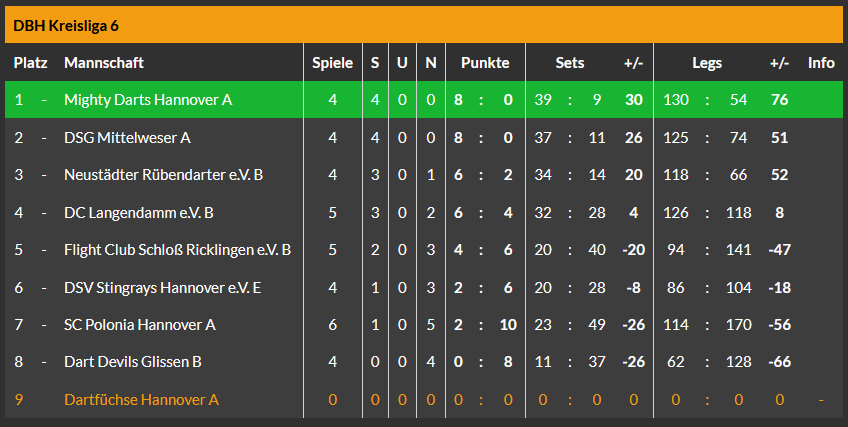 Danach klarte es, wie bereits geschrieben, aber mächtig auf. Das A-Team, bereits etwas ungeduldig, ob der Überlänge eines vorangegangenen Spiel, drehte stark auf. Allen voran überzeugte Gero mit zwei 17er Shortlegs gegen einen starken Gegner vom SC Elite Hannover. Zusammen mit Chrizzy gelang sogar noch ein schicker 15 Darter.