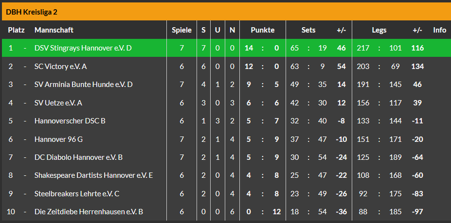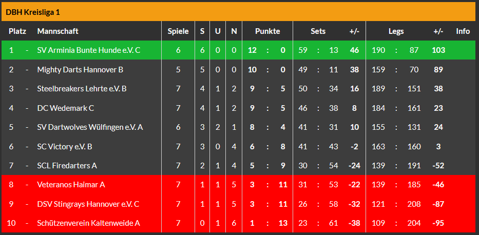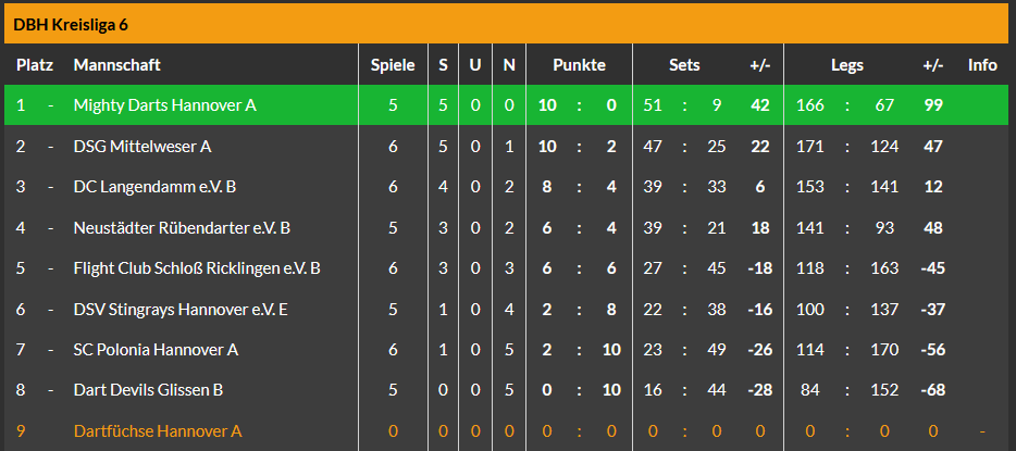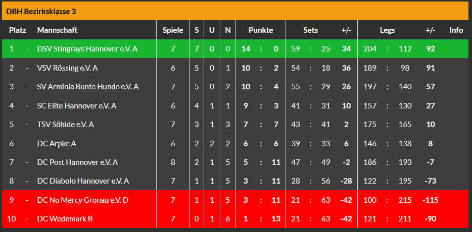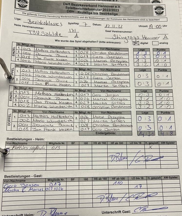 Für das C-Team ging es in die Wedemark zum dortigen C-Team. Leider konnten am Ende keine Punkte mitgenommen, 3:9 hieß der Endstand. Trotzdem verbrachte man einen netten Abend.🍻