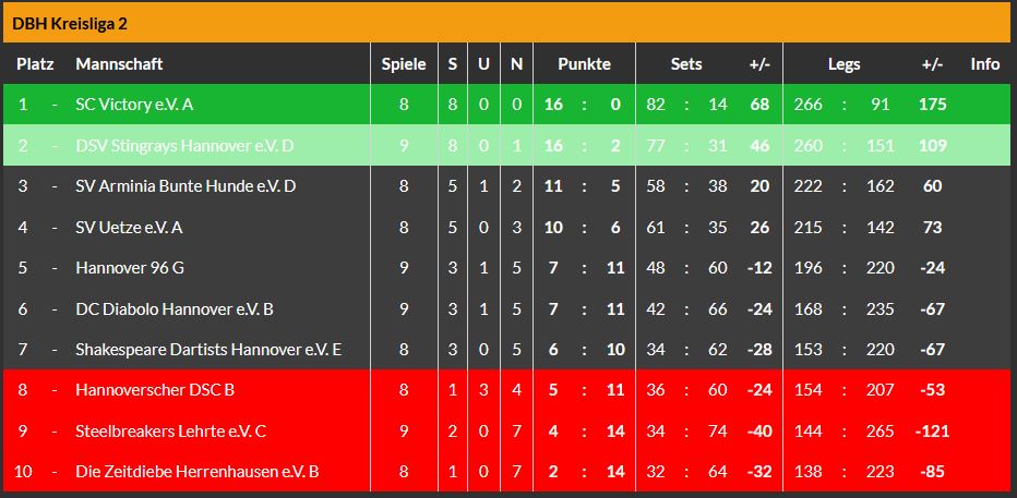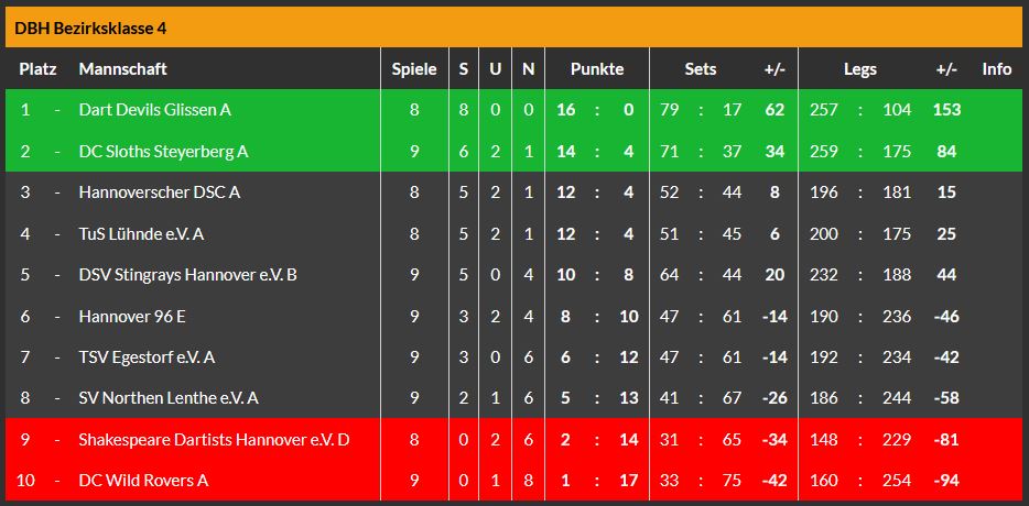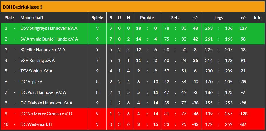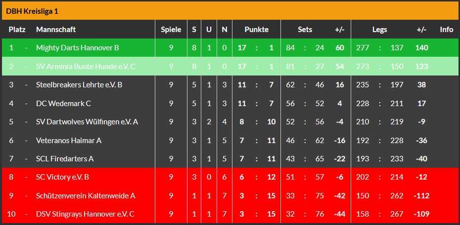Am Freitag bereits kam das C-Team beim Tabellenführer der Kreisliga 1, dem B-Team der Mighty Darts Hannover auch zu zwei Punkten, allerdings nur in Form von Sets.