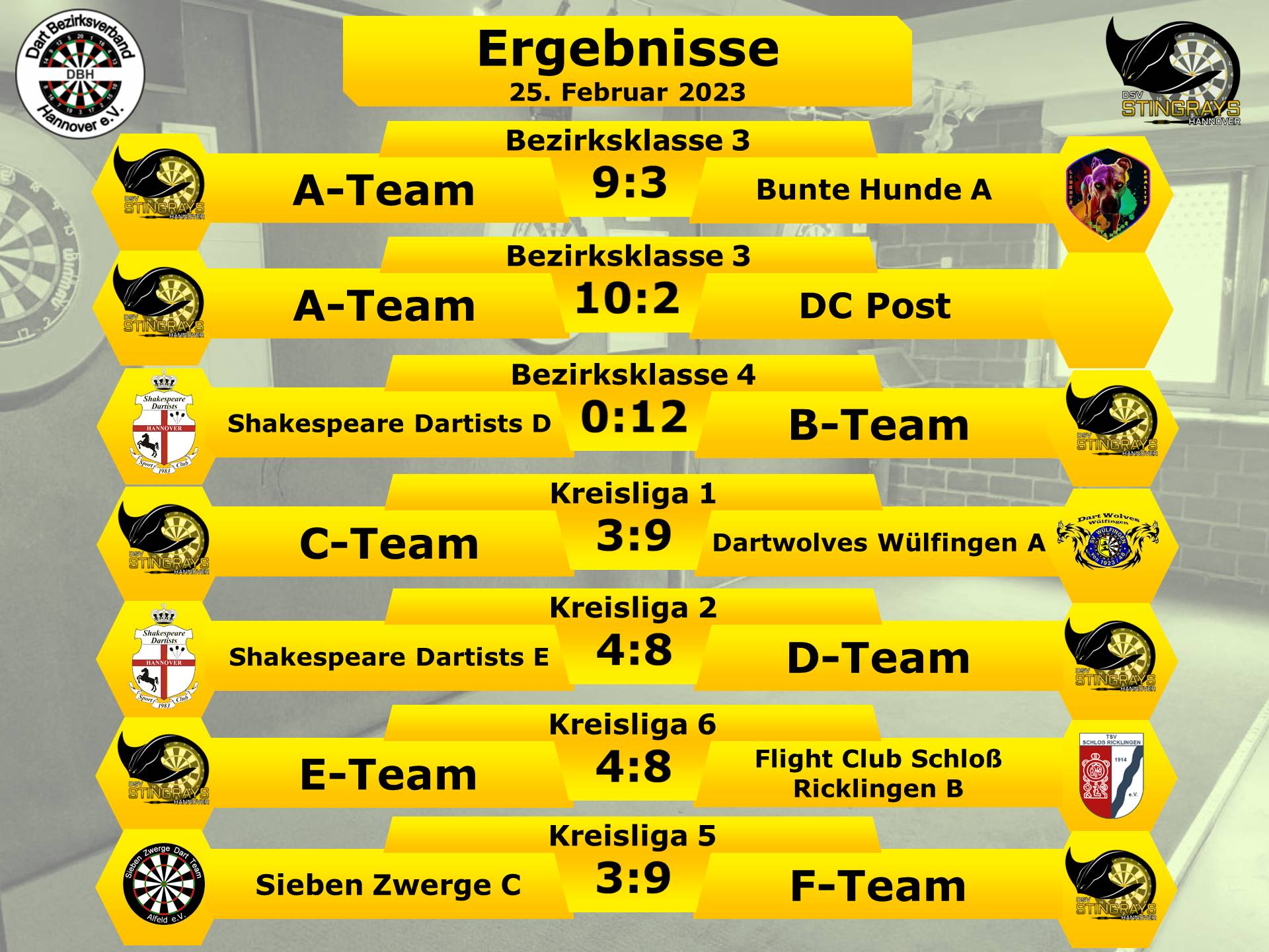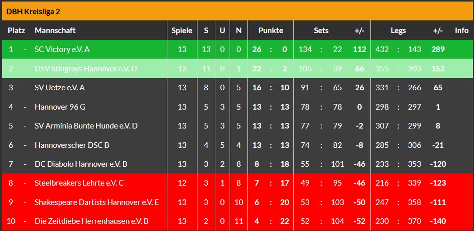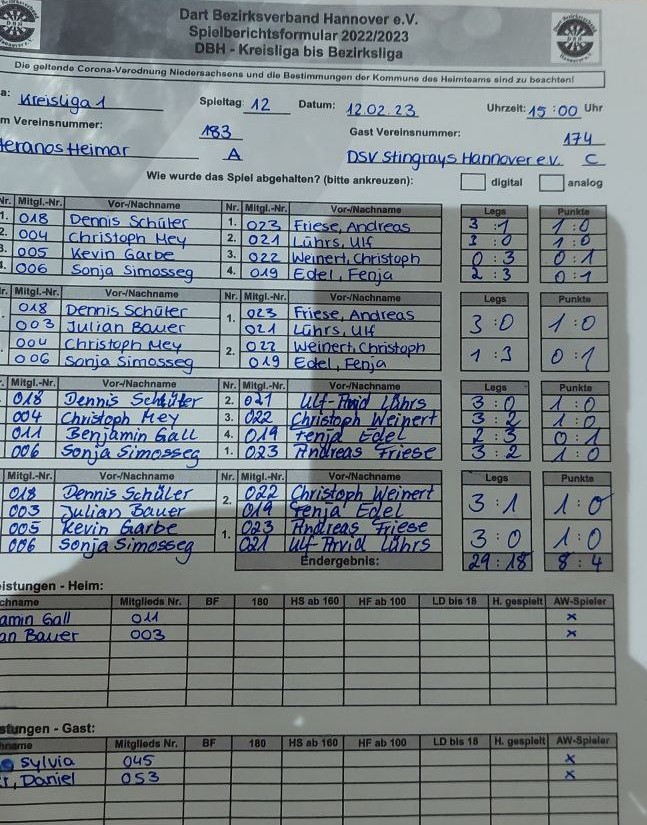 Fürs B-Team ging es nur ein paar Meter auswärts zu Germania List um dort gegen das D-Team der Shakespeare Dartists anzutreten. Es lief gut für die Rochen, vielleicht lag es an der Ballermann-Atmosphäre👩🎤 der feiernden Rugby-Spieler🏉 nebenan.