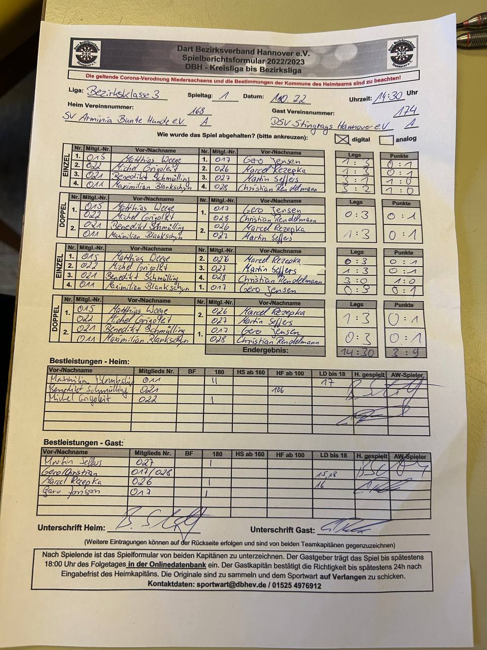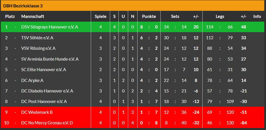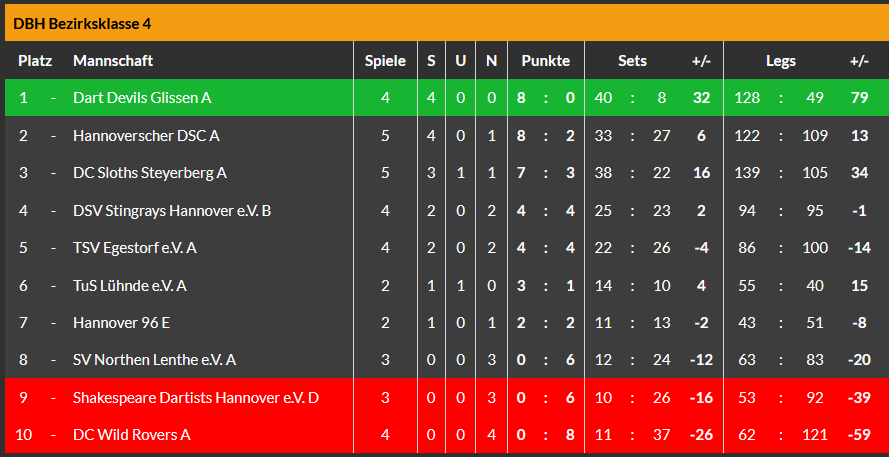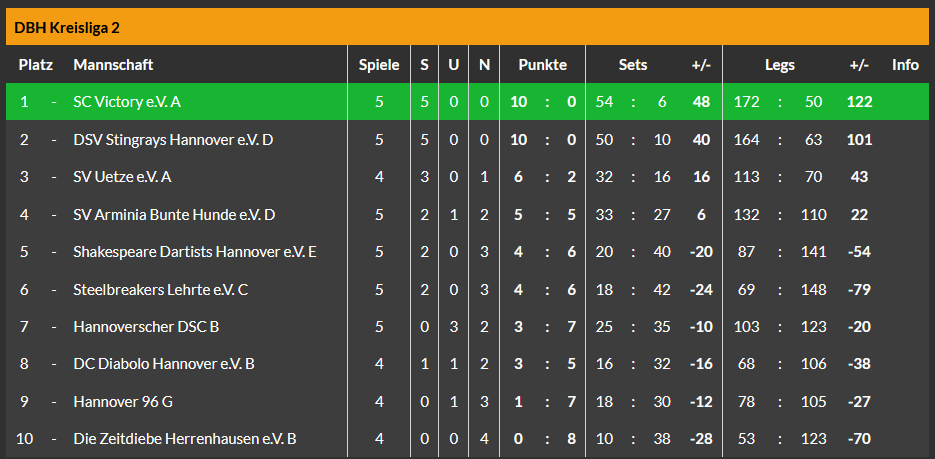 Abends kam dann noch das D-Team, man könnte schon sagen: wie immer, zum nächsten deutlichen Erfolg. 10:2 hieß es am Ende gegen das B-Team des Hannoverschen Dart-Clubs.🎯