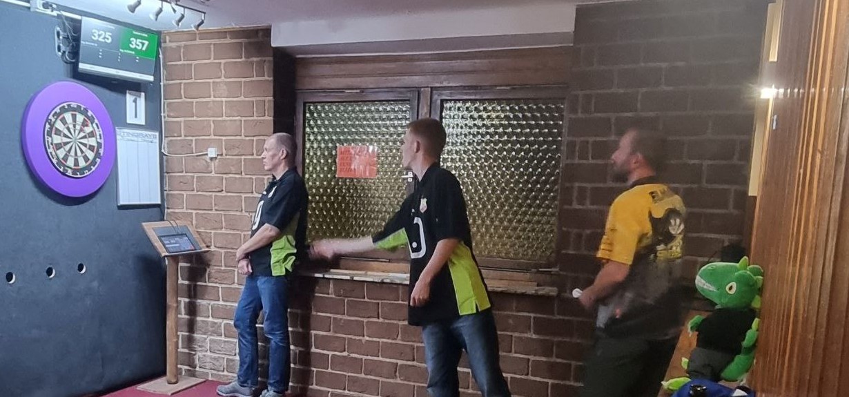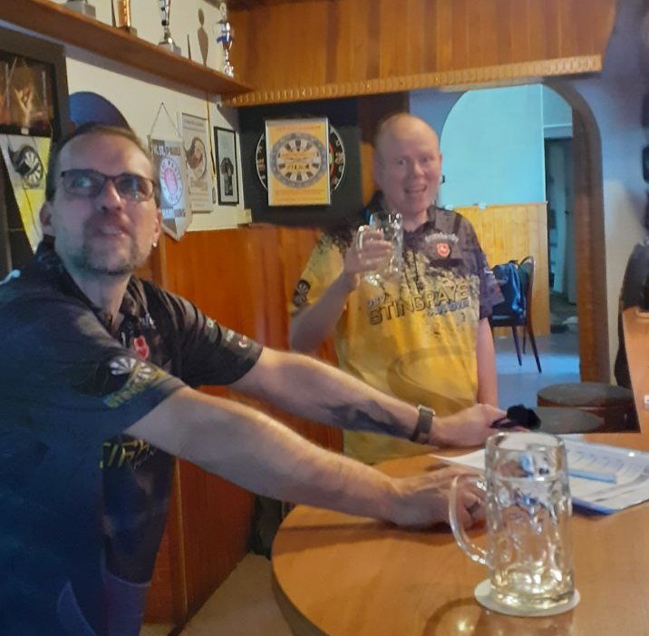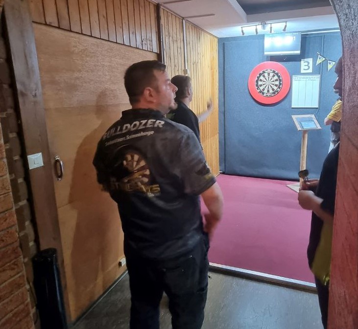 Julien und Jan gewannen ihr Doppel auch, aber Kai und Pastis konnten nach 3 vergebenen Matchdarts leider nicht nachziehen und somit blieben die Punkte also in Herrenhausen.👏
