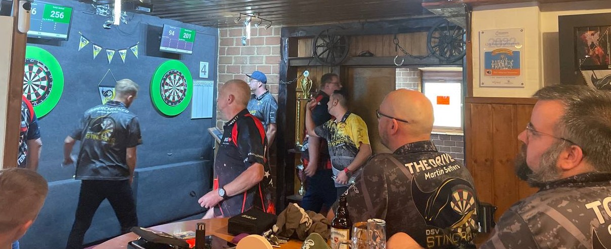 Ein netter Dart Abend unter netten Menschen fand sein Ende in geteilten Punkten im Tabellenkampf. Absolutes Highlight an diesem Abend, was für einen kurzen Herzstillstand bei den Gegnern sorgte, war das 143 Highfinish vom Baby Briem. Alle Anspannung, die in diesem Moment von ihm abfiel, ließ er in einem lauten Freudenschrei raus.