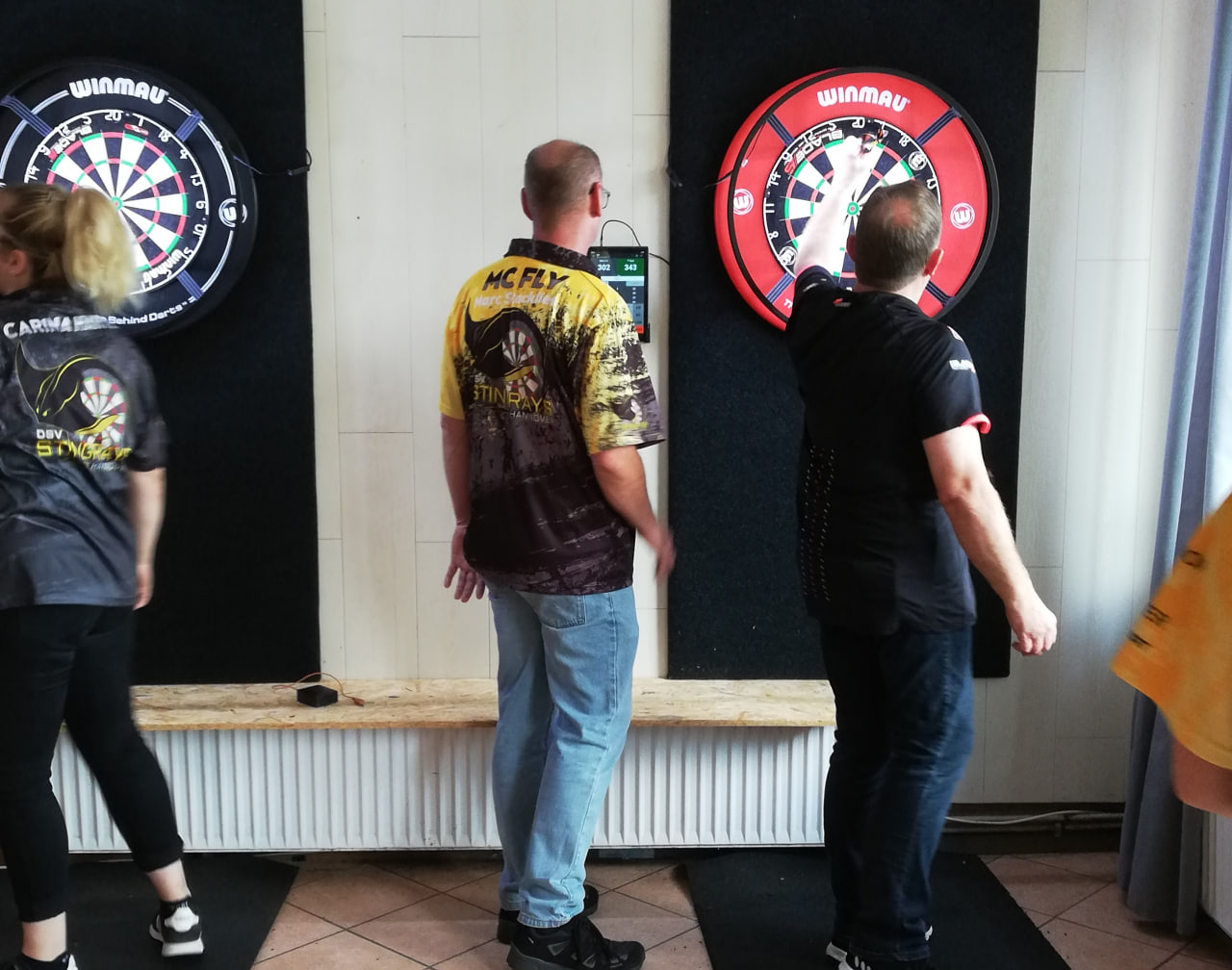 Angekommen und mit der Spielstätte vertraut gemacht, startete die erste Hälfte in Form der sechs Einzel. Chrizzy, Tophte und Marcel brachten nicht nur die Siege auf Stingrays Seite, sondern auch ein paar Specials ans Board🎯. Marcel schmieß eine 180 - machte den 14er zum Match.💪