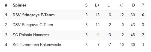 Auf dem zweiten Platz landete das G-Team der Gastgeber vor dem SC Polonia Hannover Dart und dem Steel Darter Schützenverein Kaltenweide.