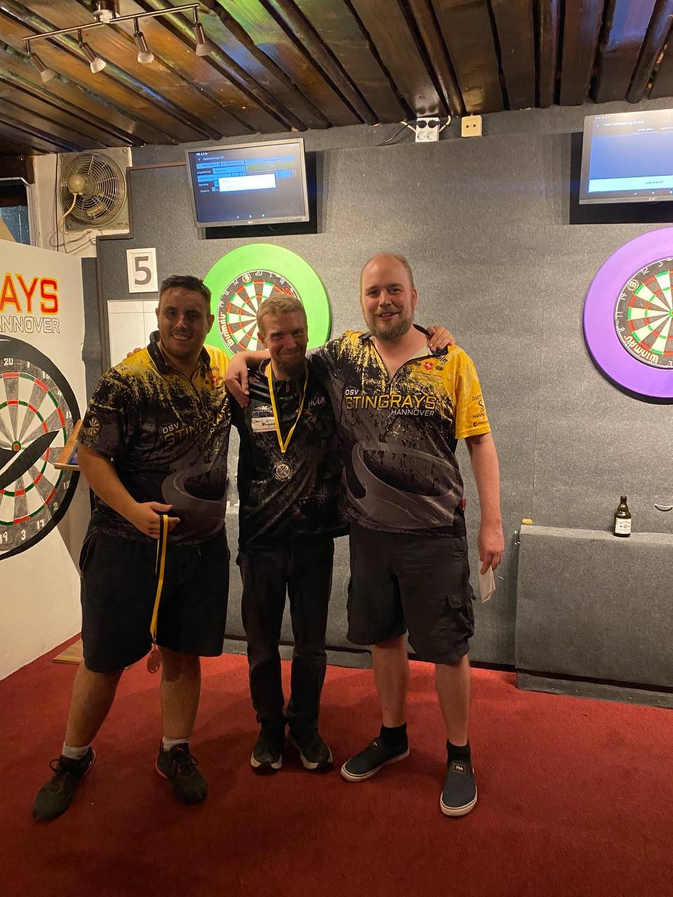Für eine kleine Überraschung sorgte unser „Pastis“, der mit seinem abschließenden 3:0 gegen einen bis dato unter Form spielenden Tzmarty eine Punktlandung auf Platz zwei schaffte 👍, hinter „Dart Vader“ Marcel, der alle Spiele souverän mit 3:0 für sich entschied. Tzmarty schloss als dritter, „Soulman“ Bernd als vierter ab. Die größte Überraschung des Tages war aber unser jüngster Teilnehmer „Taurus“ Claas, dem nach seinem 3:1 gegen „Pastis“ und den Remis gegen Sterni und Bernd nur ein Leg zum Silbercup fehlte. In einer außer ihm nur aus Stingrays bestehenden Gruppe wurde Sterni nur sechster, war ihm aber komplett egal. Er strahlte immer noch über den Sieg des HSV.😍