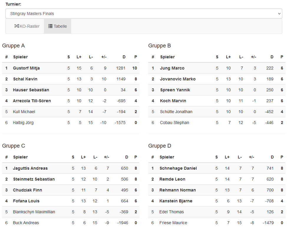In Gruppe D war es mit Thomas Edel und Maurice Friese zwei weiteren Stingrays nicht vergönnt, das Achtelfinale zu bestreiten.