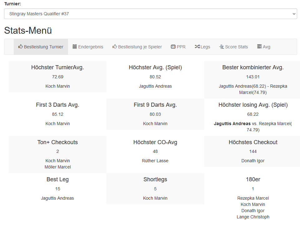 Stark war aber auch der Auftritt von Marcel "Dart Vader" Rezepka, der als aktiver Stingray mal wieder ein Halbfinale erreichte. Dort waren dann allerdings die Körner alle und im Spiel um Platz 3 konnte sich Marcel Möller knapp durchsetzen.💪