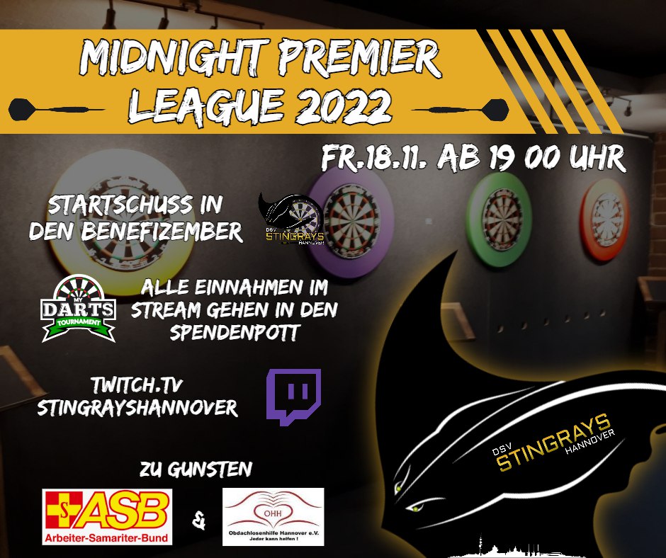 Das Preisgeld von 5.000 Euro wird zu einem Viertel in das Spendengeld des Benefizember fließen, mit dessen Aktionen wir wieder zwei lokale Einrichtungen unterstützen werden. Start des diesjährigen Benefizember ist am 𝐤𝐨𝐦𝐦𝐞𝐧𝐝𝐞𝐧 𝐅𝐫𝐞𝐢𝐭𝐚𝐠, 𝟏𝟖.𝟏𝟏, wo im Rahmen der Midnight-Premier-League wieder viele Spieler die Nacht zum Tag machen, und von 19 Uhr bis in den Samstagnachmittag hinein die Pfeile glühen lassen werden. Alles natürlich live über Twitch gestreamt und kompetent kommentiert. 𝐊𝐨𝐦𝐦𝐭 𝐯𝐨𝐫𝐛𝐞𝐢, 𝐬𝐜𝐡𝐚𝐮𝐭 𝐳𝐮, 𝐮𝐧𝐝 𝐟ü𝐥𝐥𝐭 𝐝𝐚𝐬 𝐒𝐩𝐞𝐧𝐝𝐞𝐧𝐬𝐜𝐡𝐰𝐞𝐢𝐧.
