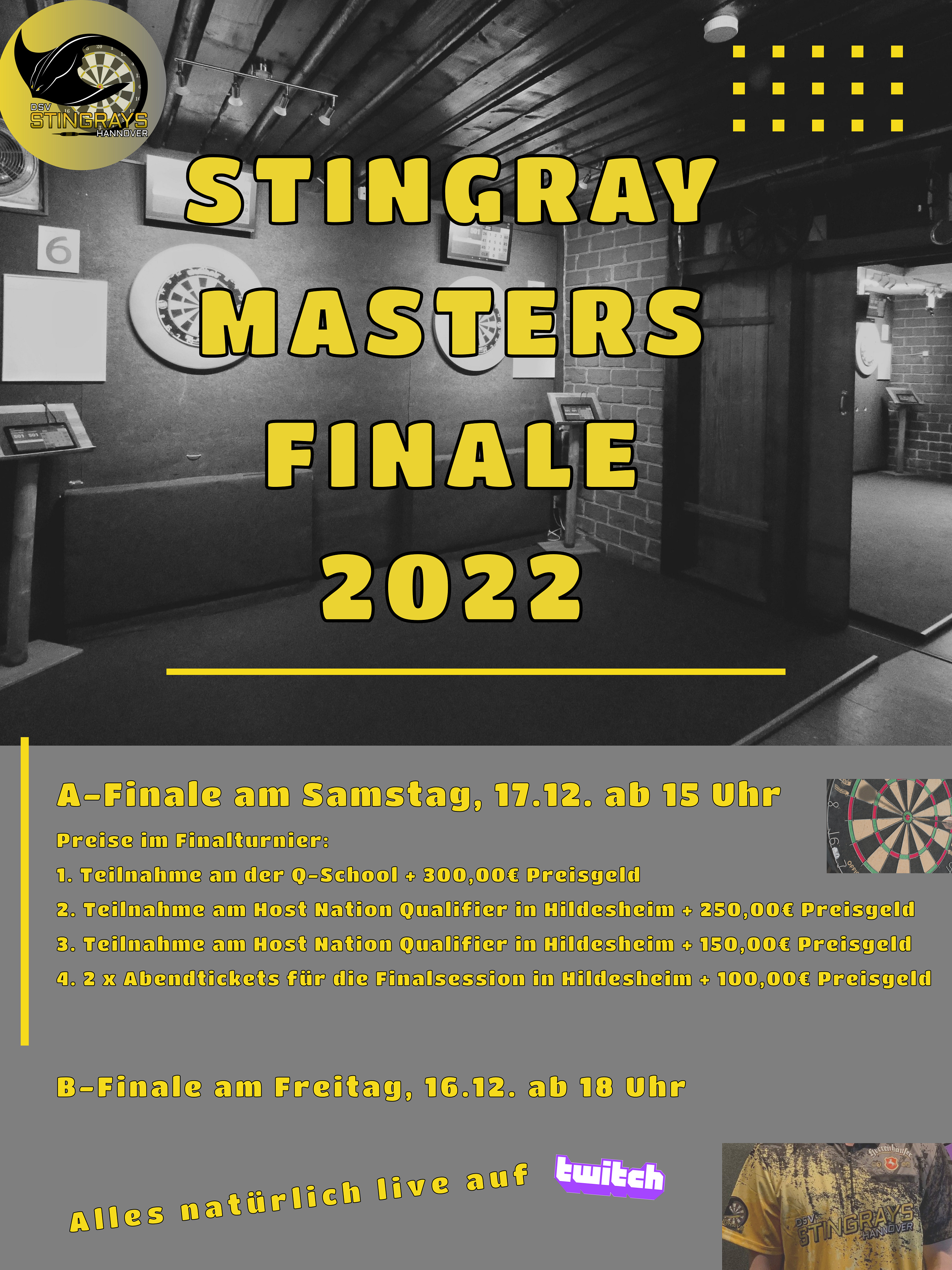 Die zweite Auflage der Stingray Masters Qualifier sind seit Mittwoch Geschichte. Um den Deckel draufzumachen, so wollen wir natürlich auch dieses Jahr (zwei) Finals mit euch feiern! Das B-Finale steigt am 16.12.2022 - Anwurf 18:00 Uhr. Dazu qualifiziert sind die Plätze 25 bis 40. Einen Tag später (17.12.2022 - 15:00 Uhr) geht es für die Top 24 der abgelaufenen Ranglistensaison um...