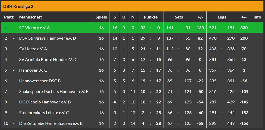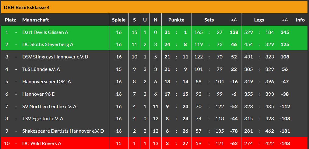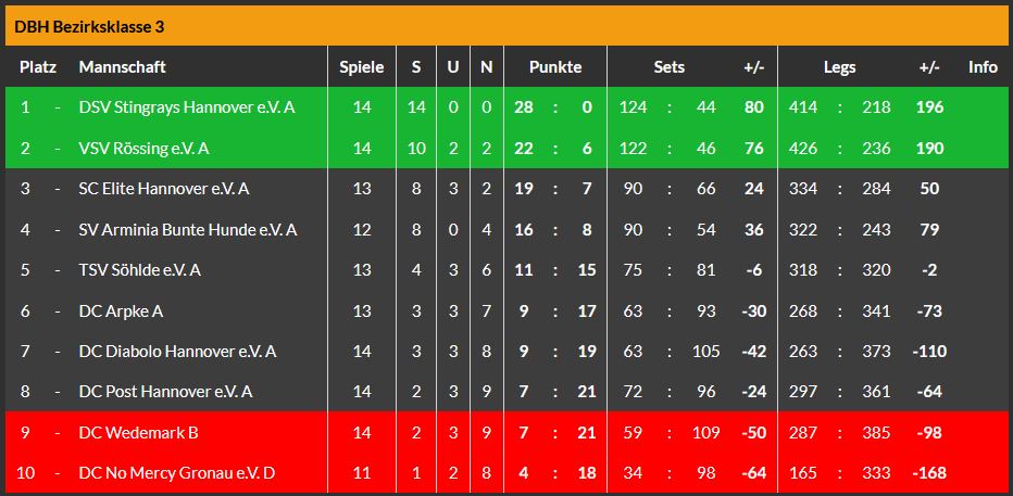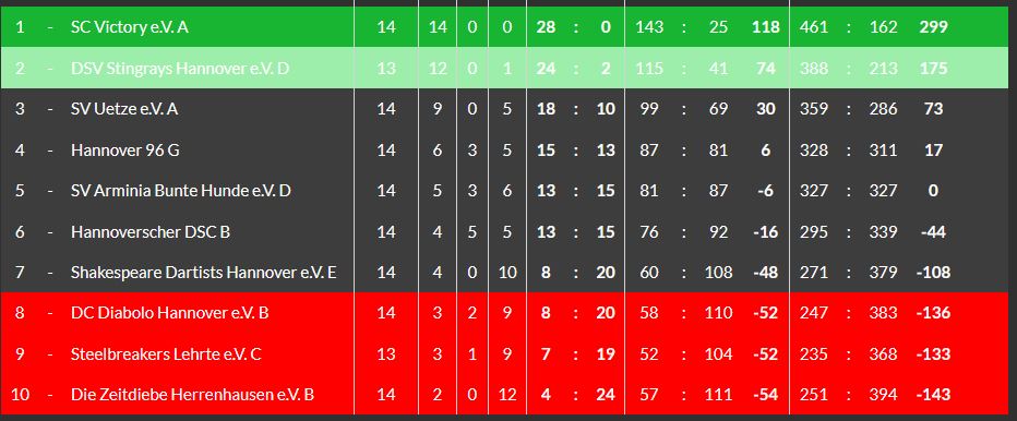 Zum vorgezogenen Letztrundenspiel reiste das B-Team zum E-Team von HANNOVER 96 DART. Für die Stingrays ging es hauptsächlich darum, die hervorragende Rückrunde vernünftig ausklingen zu lassen.