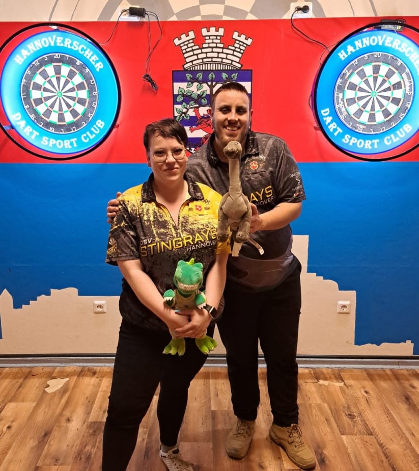 Für einen absoluten Gänsehautmoment sorgte Claas in seinem Doppel mit Lena, als er zum richtigen Zeitpunkt seine erste 180 in einem Spiel im Board versenkte und das Leg am Ende auch checkte.🥳
