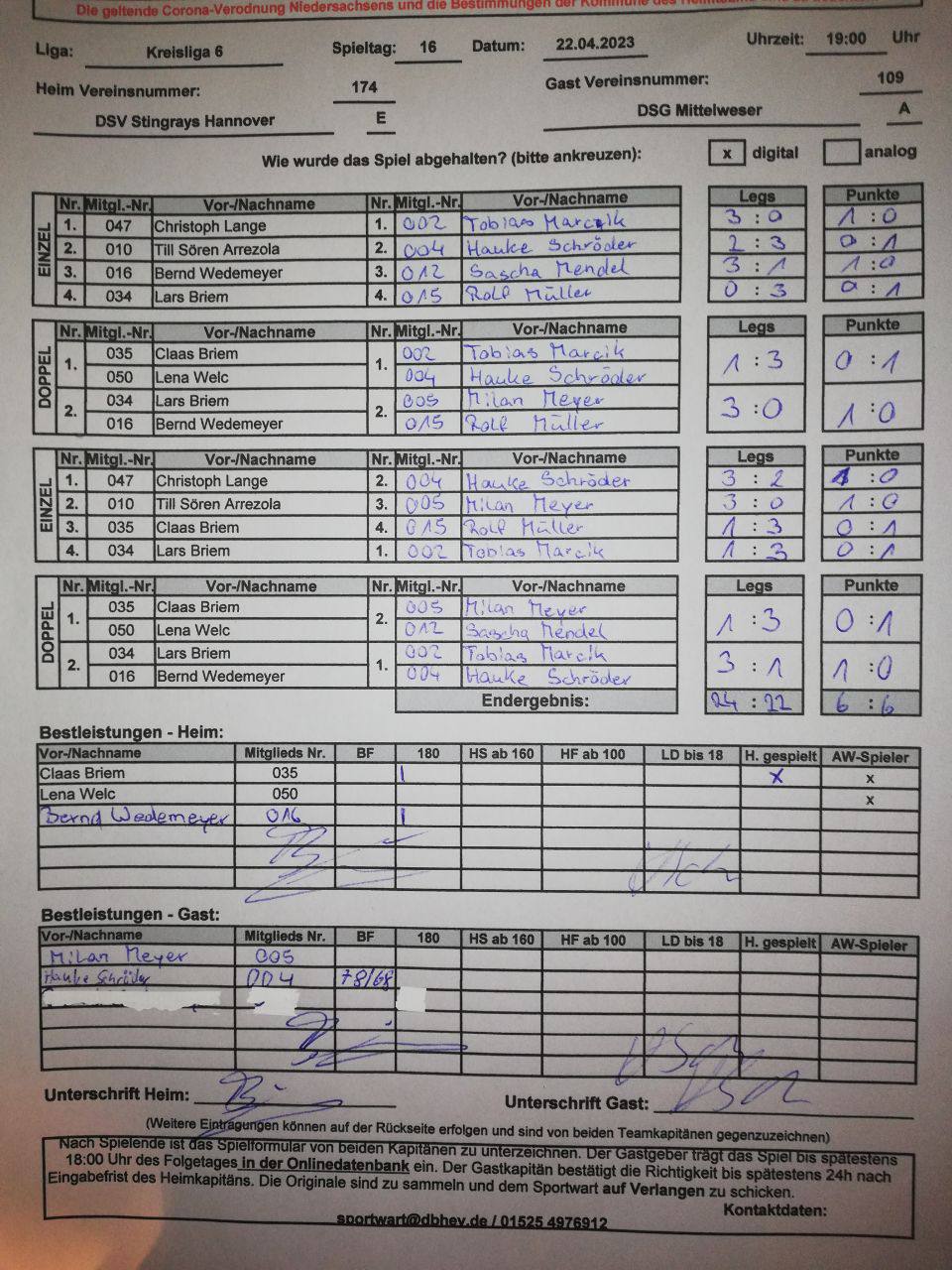 Ein großer Dank👏 geht an Maurice für seine Unterstützung als Schreiber✍️, an unsere Gastgeber🤝 für einen sehr angenehmen, entspannten Dartnachmittag und an die mitgereisten Stingrays, mit denen im Anschluß im heimischen Rochen noch ein GuteNacht🌃-Getränk🍻 zu sich genommen wurde.
