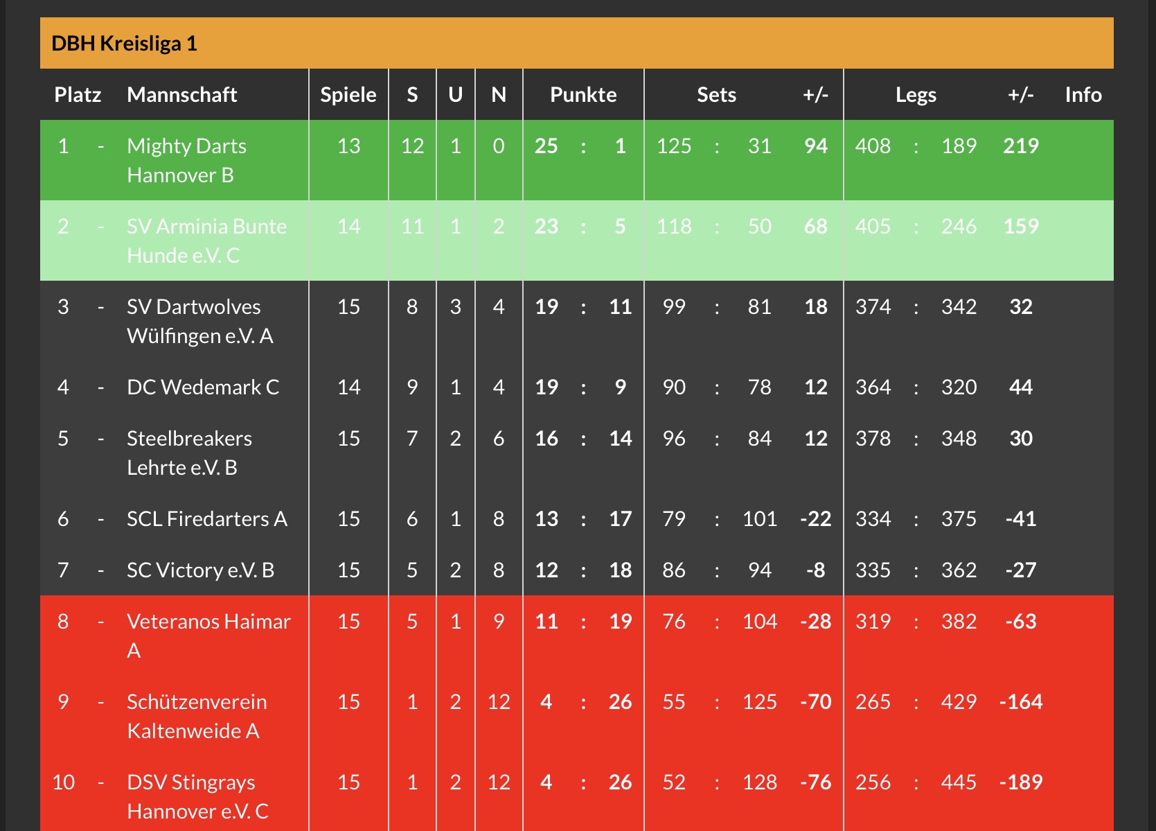 Für das D-Team führte der Weg in den Darttempel🛕 zum B-Team von DC Diabolo Hannover e.V.😈. Am Ende stand ein solides 8:4 ohne weitere Höhepunkte.
