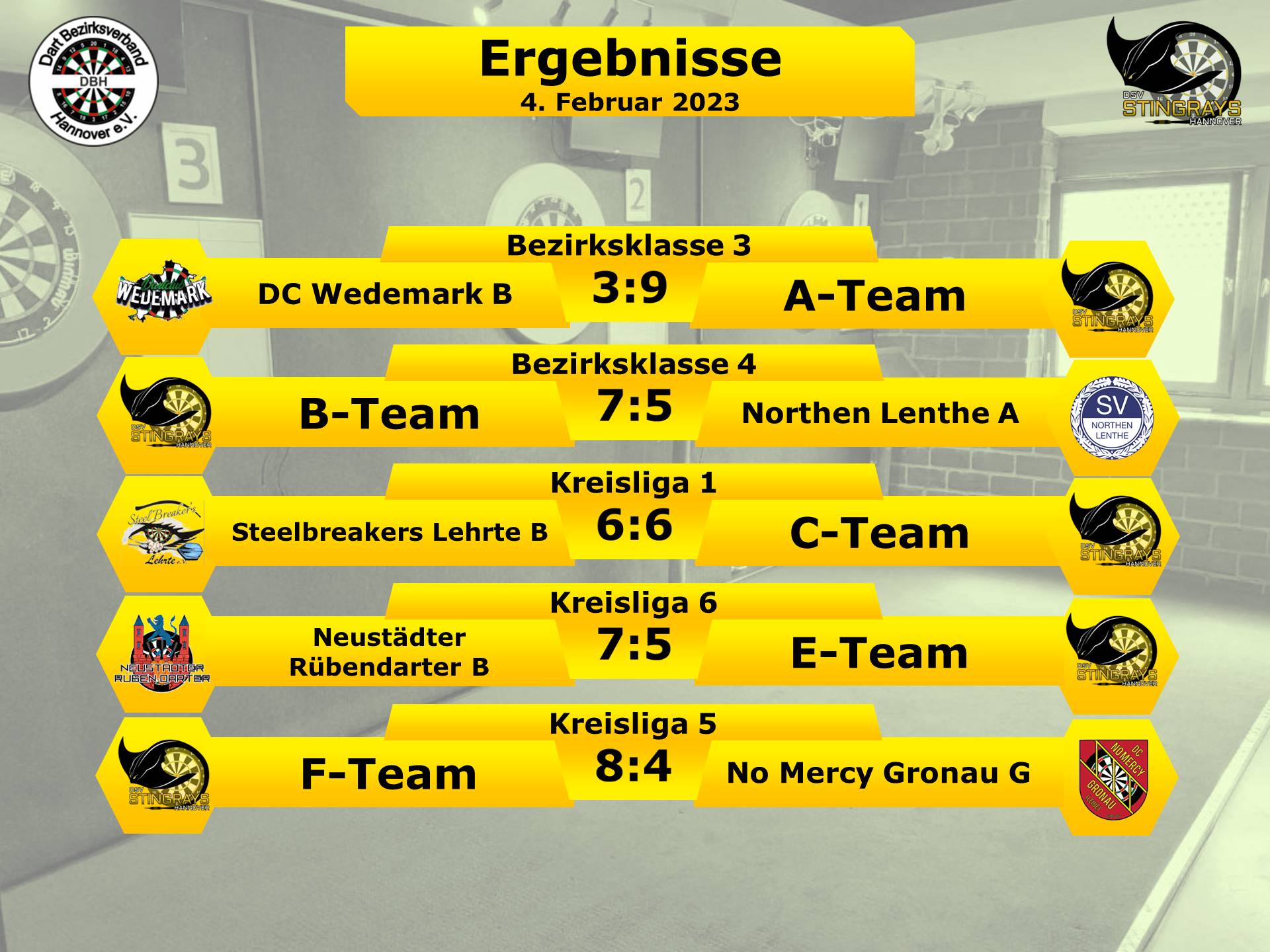 Fürs B-Team ging es nur ein paar Meter auswärts zu Germania List um dort gegen das D-Team der Shakespeare Dartists anzutreten. Es lief gut für die Rochen, vielleicht lag es an der Ballermann-Atmosphäre👩🎤 der feiernden Rugby-Spieler🏉 nebenan.