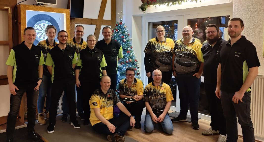 Beim Stand von 3:5 für die Gäste vom F-Team der Sieben Zwerge Dart Team e.V. schien alles auf eine Niederlage der Stingrays hinzudeuten. Doch mit Hilfe eines 14er im Doppel von Justin und Kai und der Coolness von Tzmarty im Doppel mit Jan konnte letztlich ein knapper Sieg eingefahren werden.🥳