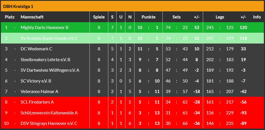 Am Freitag bereits kam das C-Team beim Tabellenführer der Kreisliga 1, dem B-Team der Mighty Darts Hannover auch zu zwei Punkten, allerdings nur in Form von Sets.
