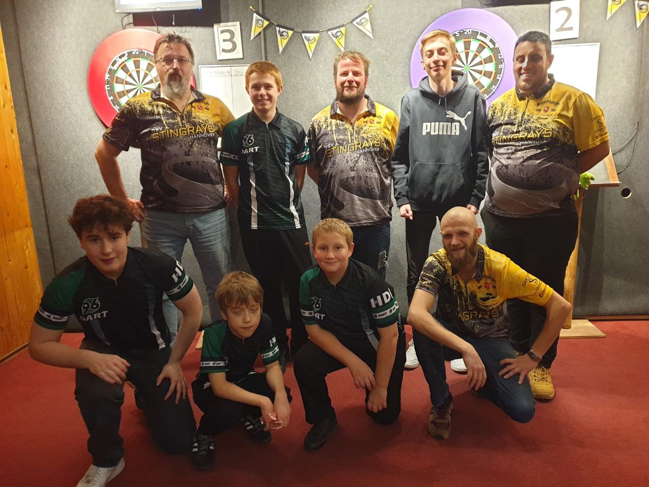 Die Tabellenführung verteidigte das F-Team beim 9:3 beim Auswärtserfolg in Gleidingen gegen das B-Team des DartClub Vikings Oesselse/Gleidingen. In netter Atmosphäre konnte Justin einige Highlights setzen. Zwei 180er und ein 17er Shortleg standen für ihn am Ende zu Buche. Insgesamt ein überzeugende Teamleistung, die Lust auf den weiteren Saisonverlauf macht.