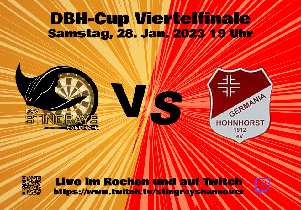 Am Samstag ab 19 Uhr steigt im Rochen das Viertelfinalmatch im DBH-Pokal zwischen den 1. Pokalteams der Stingrays und vom TuS Germania Hohnhorst Darts. Beide Teams sind in ihren (Bezirks-)Klassen Tabellenführer, doch am Samstag kann nur ein Team das Final-Four erreichen. Natürlich wird das Ganze auch Live in der Welt zu verfolgen sein. 19 Uhr einschalten auf Twitch 𝐡𝐭𝐭𝐩𝐬://𝐰𝐰𝐰.𝐭𝐰𝐢𝐭𝐜𝐡.𝐭𝐯/𝐬𝐭𝐢𝐧𝐠𝐫𝐚𝐲𝐬𝐡𝐚𝐧𝐧𝐨𝐯𝐞𝐫.