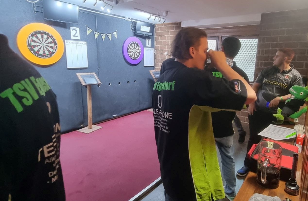 Angekommen und mit der Spielstätte vertraut gemacht, startete die erste Hälfte in Form der sechs Einzel. Chrizzy, Tophte und Marcel brachten nicht nur die Siege auf Stingrays Seite, sondern auch ein paar Specials ans Board🎯. Marcel schmieß eine 180 - machte den 14er zum Match.💪