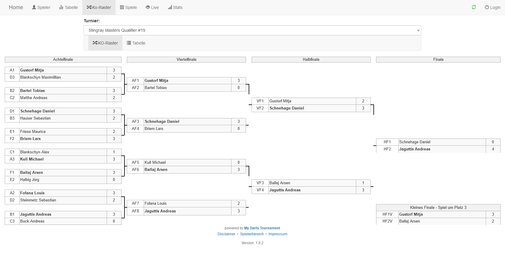 Im kleinen Finale besiegte Mitja Gustorf den zum ersten Mal teilnehmenden Arsen Ballaj knapp im Decider, trotz eines Matchdarts gegen sich.