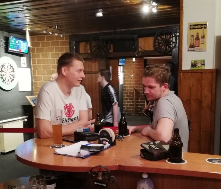 Das Finale fand dann in Andreas einen verdienten Sieger, auch wenn er damit die Geburtstagsfeierlichkeiten des momentanen Dauersiegers Marvin etwas beeinträchtigte. Die beiden zeigten allerdings Darts vom Feinsten und Andreas musste schon einen Average von deutlich über 80 spielen, um sich gegen Marvin durchzusetzen. Also, hinten wird die Ente fett ;-)