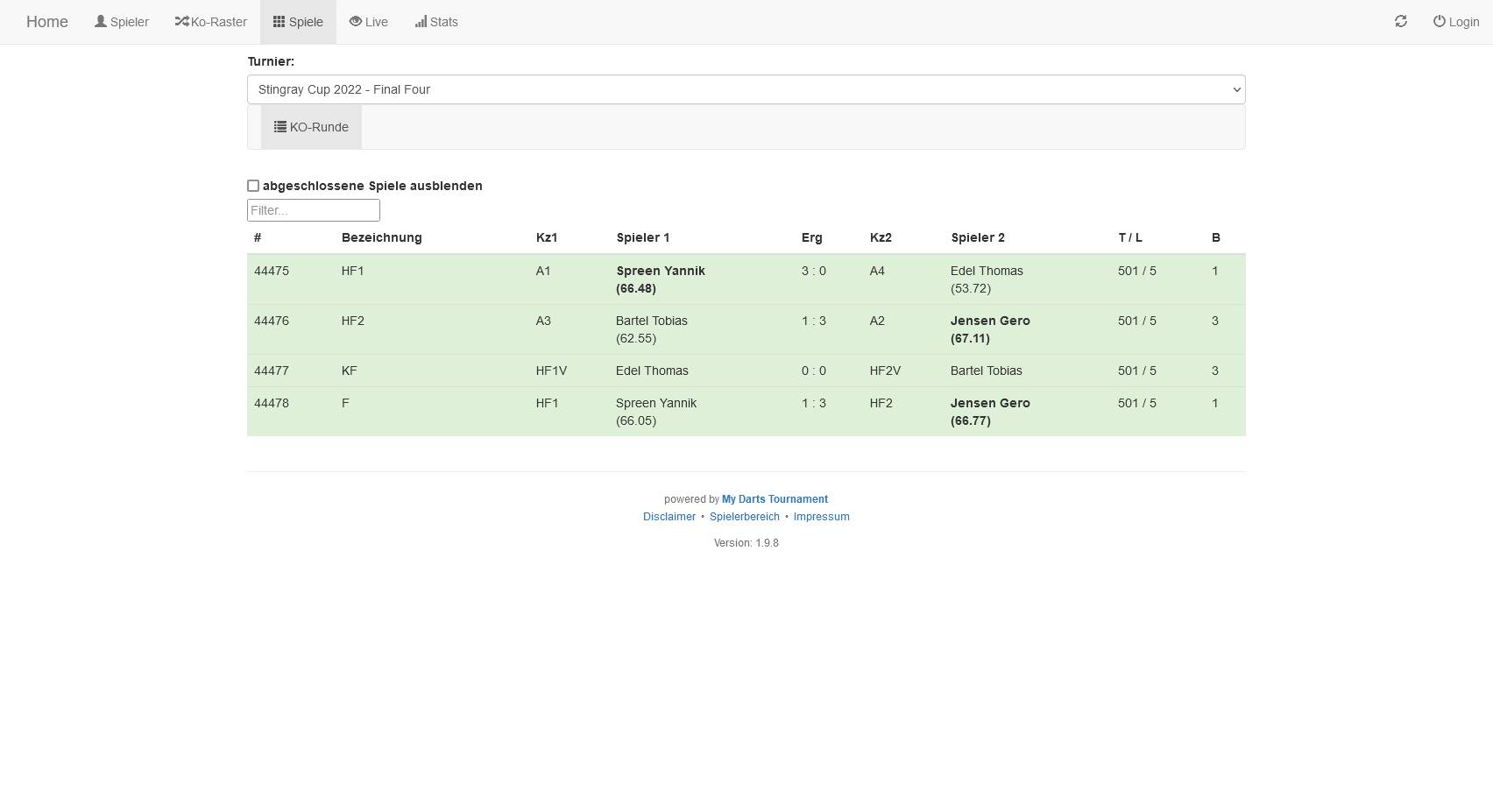 Auch die frei gelosten Achtel- und Viertelfinals waren bis zum Final-Four eigenständig terminierbar, wobei sich mit Gero, Yannik, Tobi und Thomas ein Quartett durchsetzte, das keine wirkliche Überraschung darstellte.