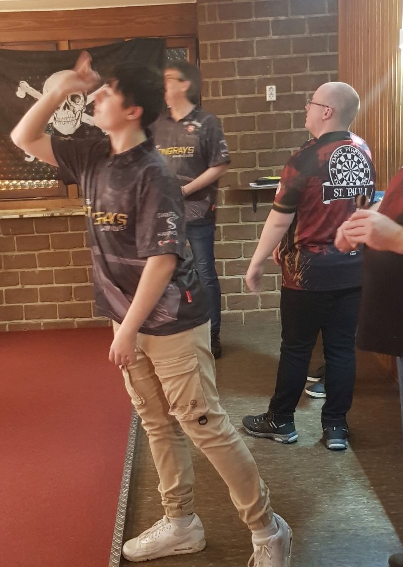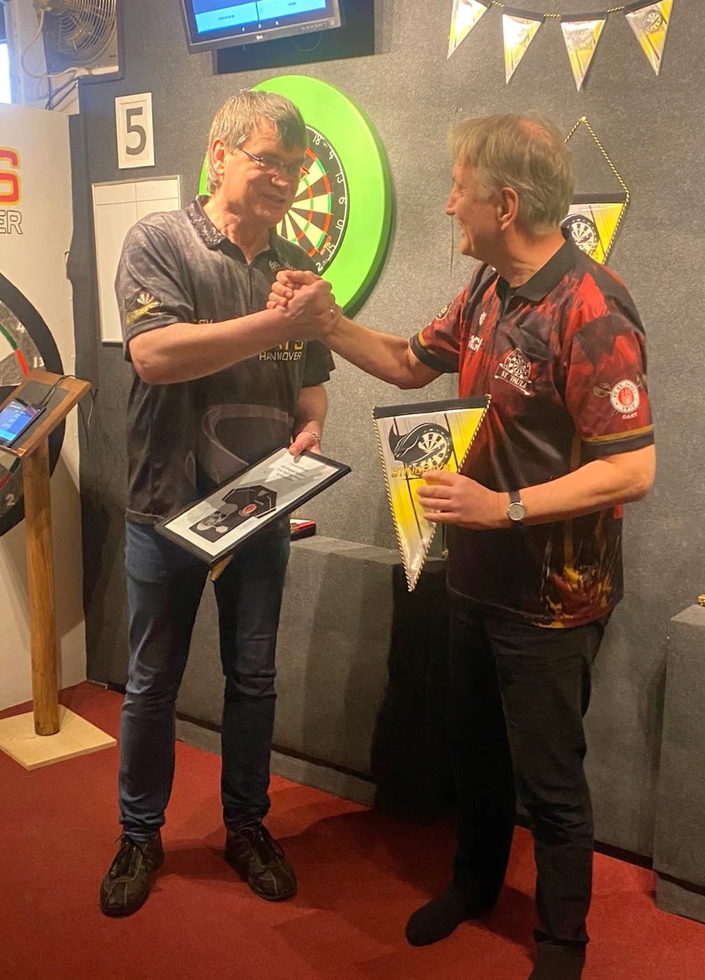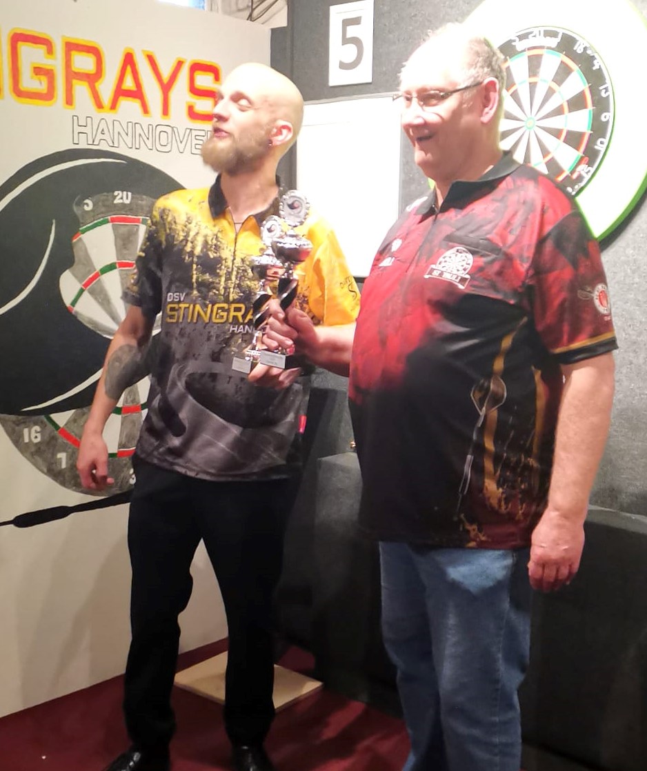 Claas spielte groß auf, insbesondere im Spiel gegen seinen Vater Lars. Beim stand von 2:2 musste er im Decider gegen Lars ans Oche und wuchs dabei über sich hinaus. Den Verlierer erwartete das Ausscheiden, verbunden mit Platz vier und somit kein Pokal. Claas vergab die 143 denkbar knapp auf der falschen Seite des Drahts zum Doppel, dichter dran wär drin gewesen. Trotzdem behielt er die Nerven und checkte anschließend souverän. Ein Erfolg, der ihm und seinem Vater auch ein wenig Pipi in die Augen🥹 trieb, ein Erfolg der ihm von allen von Herzen gegönnt wurde.