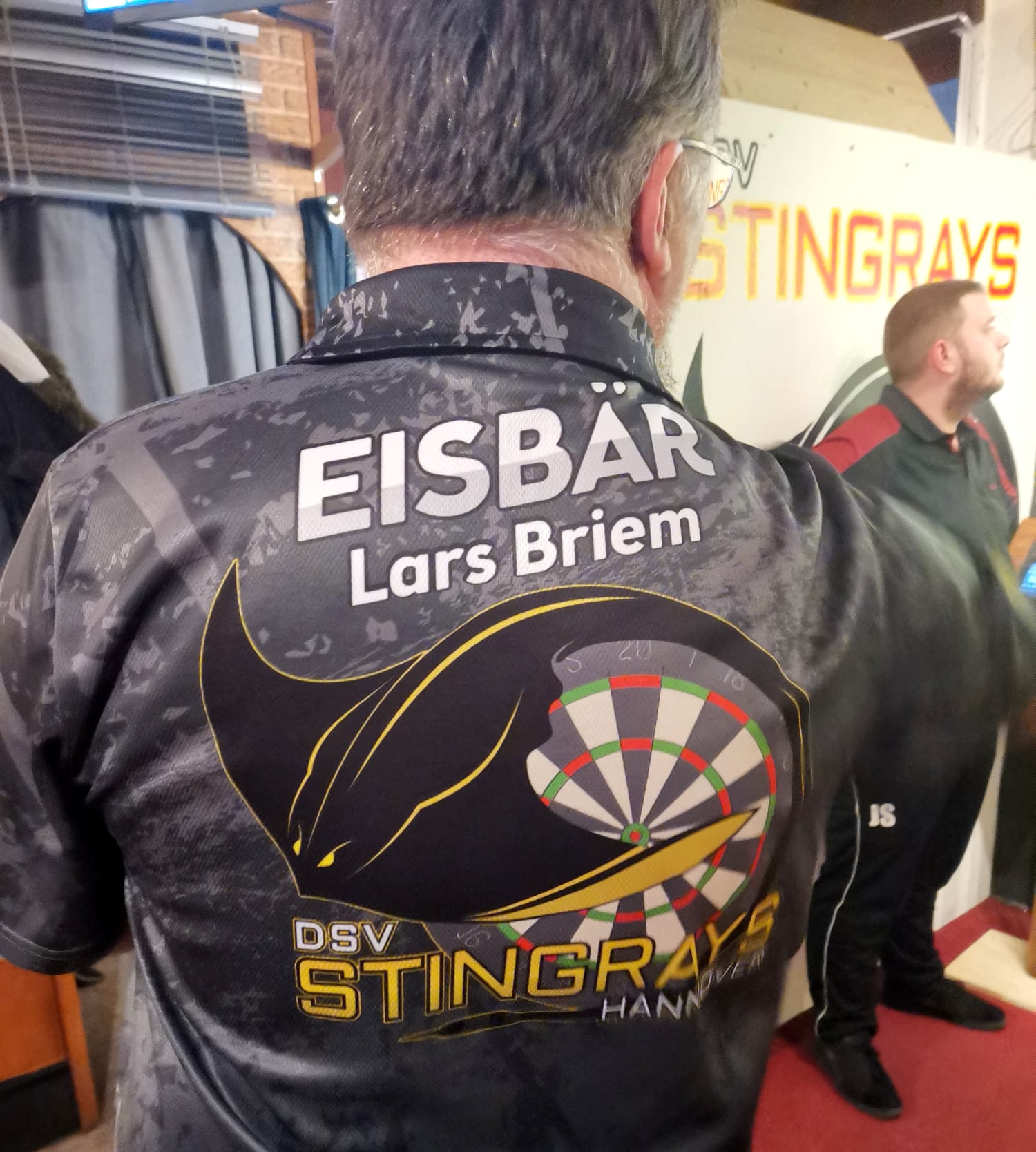 Olli Geick, bunter Hund von Arminia und häufiger Gast der Stingrays, durfte auf Seite der Dartpiraten mitspielen. Er ist langjähriges Mitglied des FC St. Pauli und auf Anfrage Tzmartys war Sigi sofort bereit Olli für den Tag zu integrieren. Die Hamburger brachten im extra ein Leihtrikot mit, was die Stingrays dann erwarben und in Ollis Besitz übergaben.