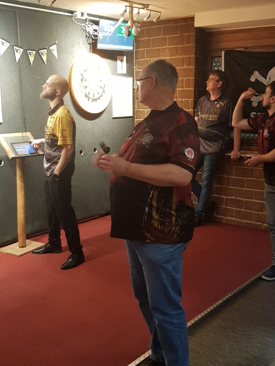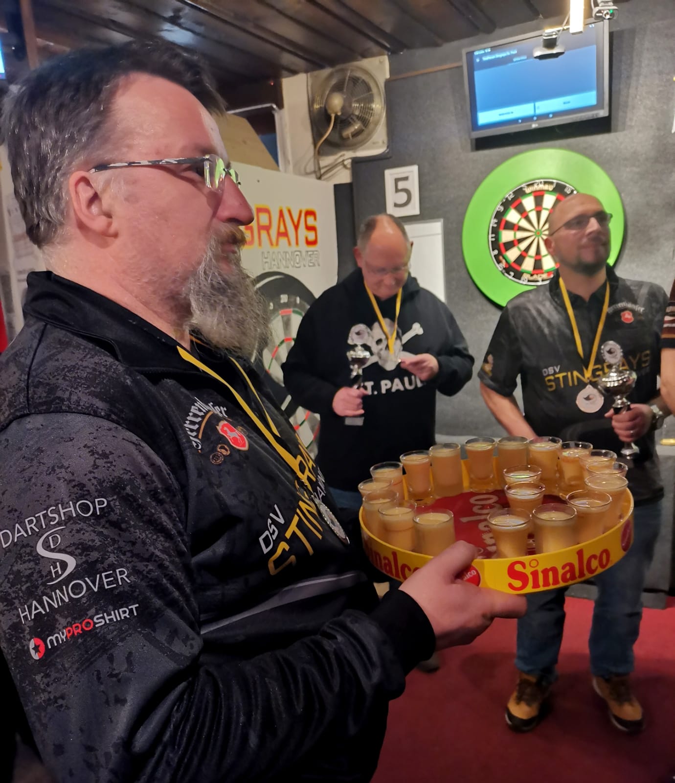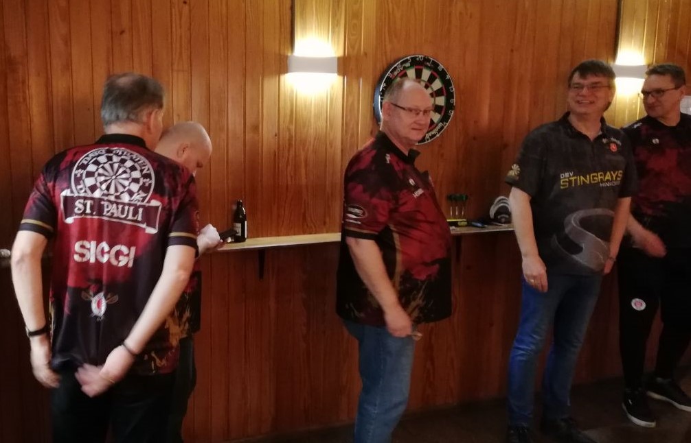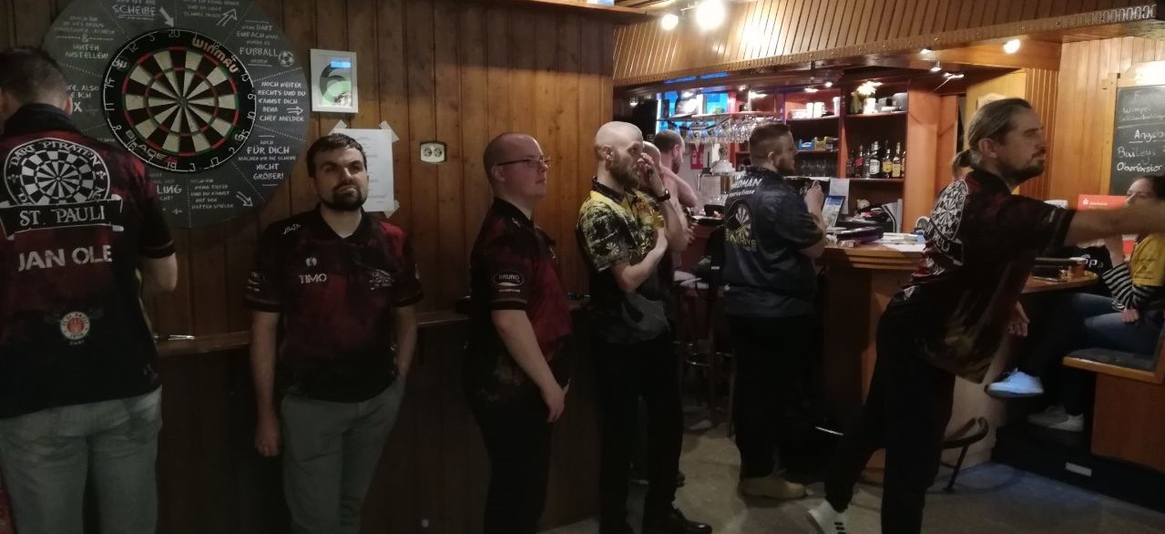 Noch bei den Viererteamspielen dabei, zu Turnier aber aus triftigen Gründen schon abwesend waren Günther, der noch im hellen wieder in Hamburg sein musste, Fenja, Markus und Stingray-Prospekt Olaf, der nach einigen Trainingseinheiten an Dienstagen somit zum ersten Mal für uns die Pfeile werfen durfte.🎯