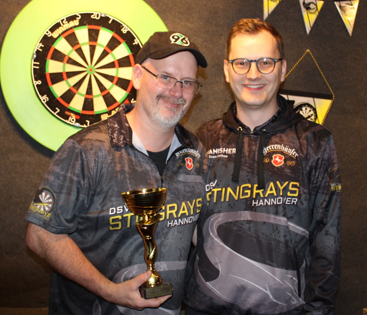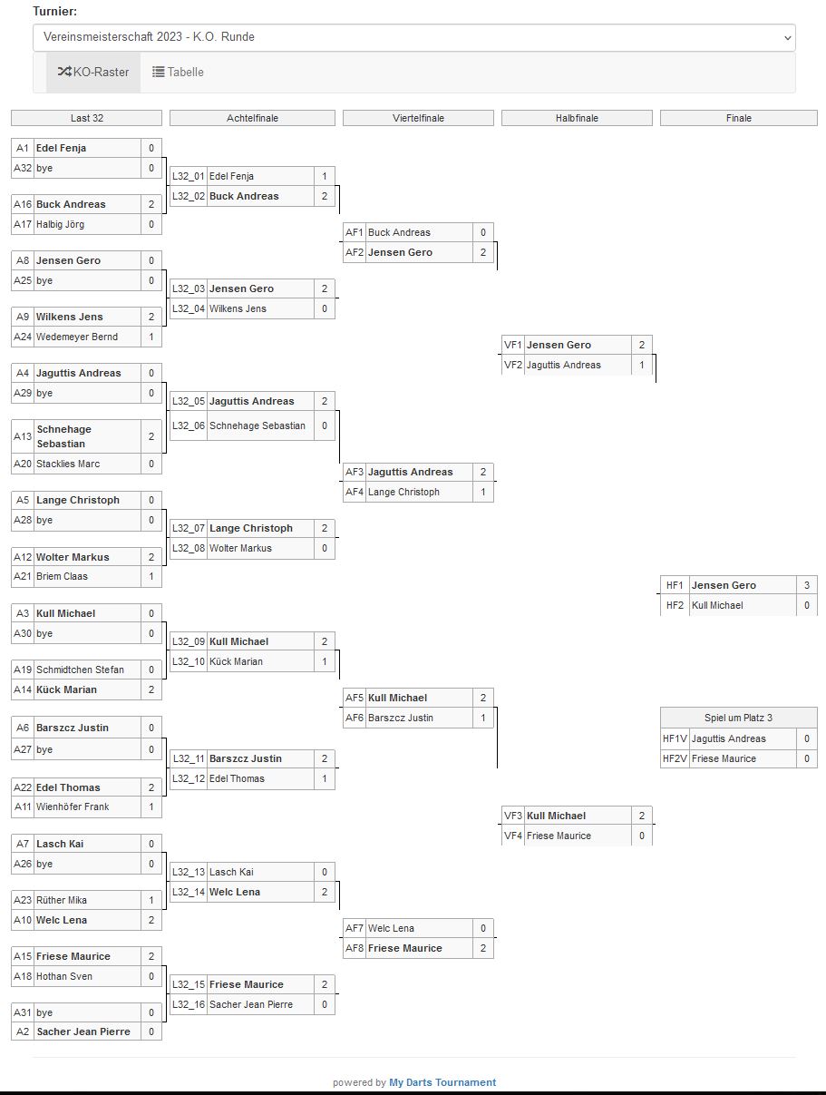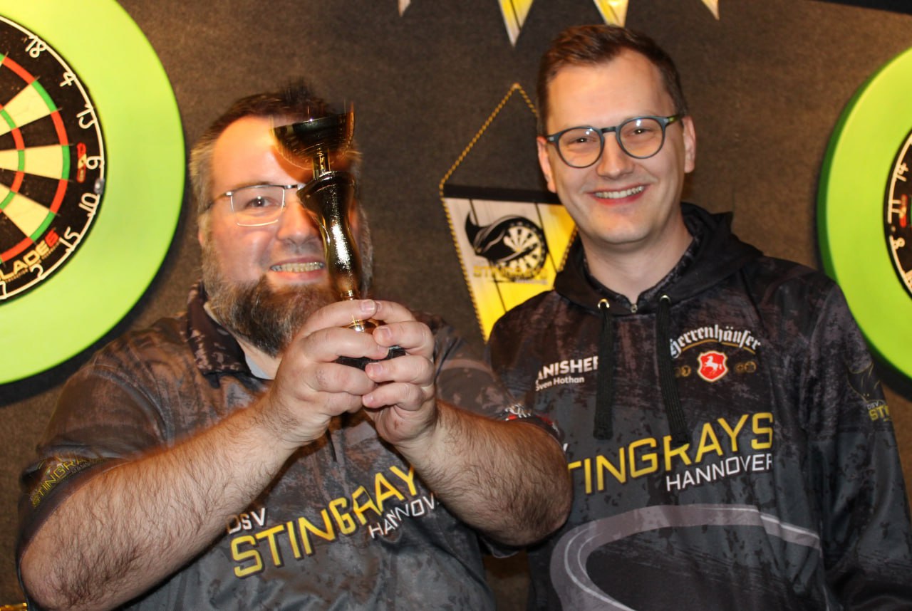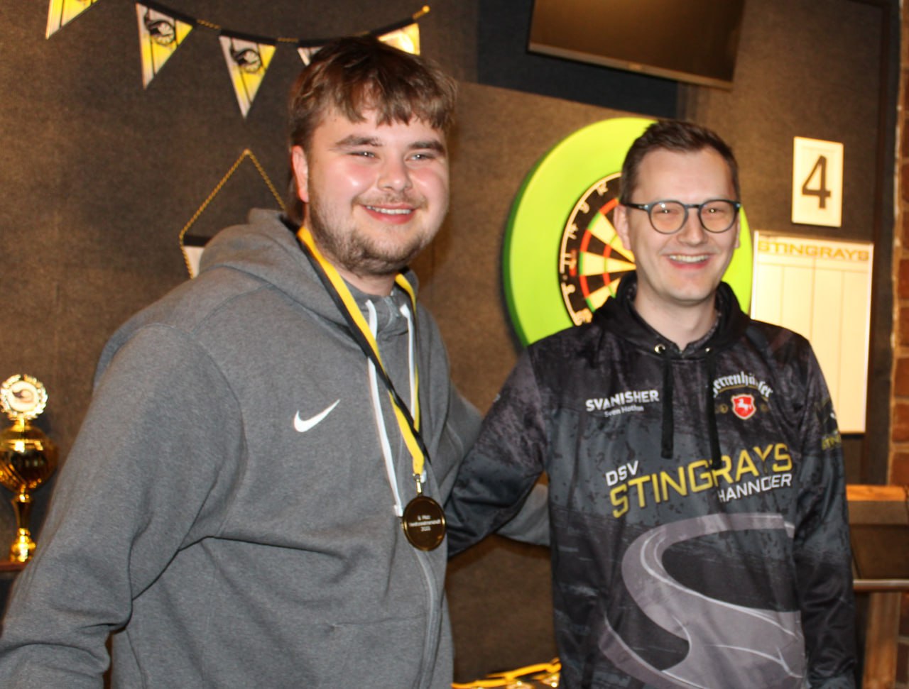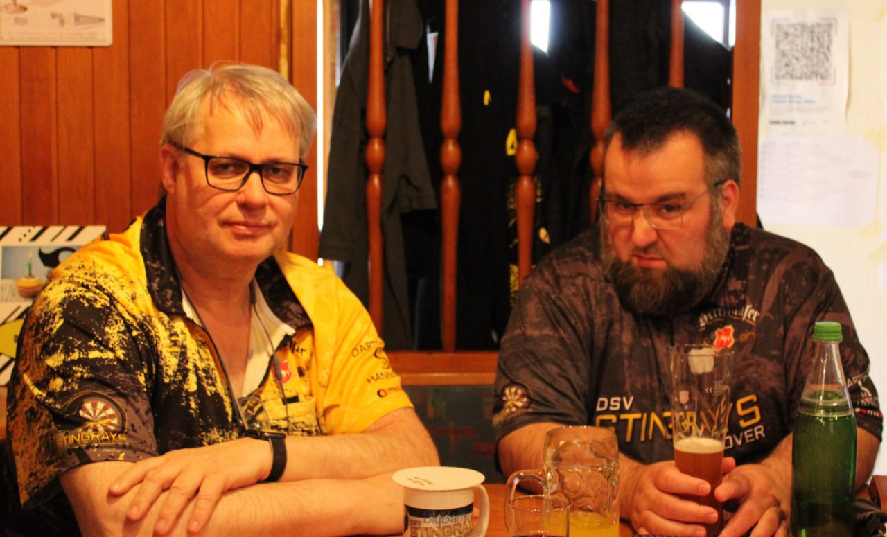 Im Halbfinale dann das vorweggenommene Finale zwischen Gero und Andy "Der Grieche". Beide schenkten sich nichts, den Schlusspunkt konnte allerdings Gero mit einem 94er Check setzen. ๐Fรผr Andy endete hier seine erste Vereinsmeisterschaft bei den Stingrays und er zeigte uns deutlich auf, dass in unseren Fanshop dringend ein Cappy๐งข mit vernรผnftigem Logo gehรถrt.