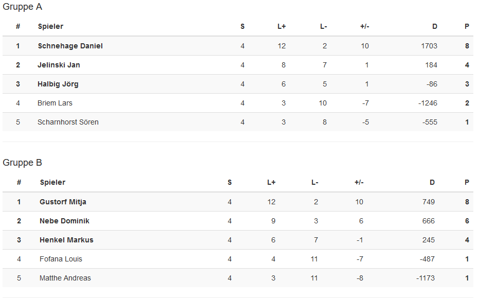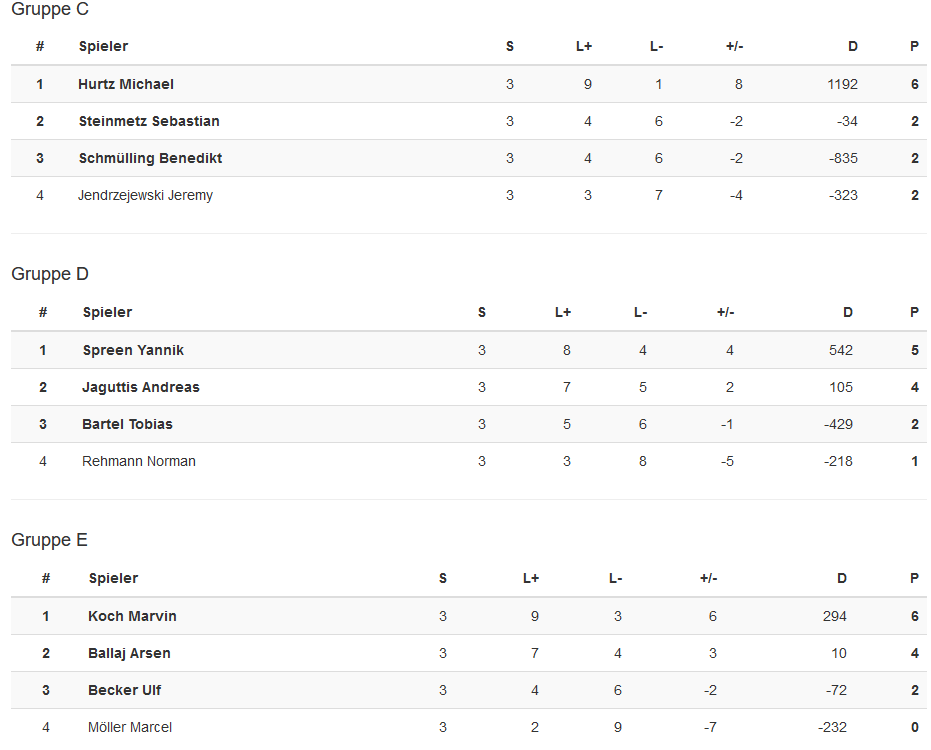 Mann des Tages war Michael Hurtz, der sich ungeschlagen in einer der vielen Hammergruppen in die KO-Runde spielte, und dort zunächst im Achtel- und Viertelfinale zwei weitere klare Siege feiern konnte.