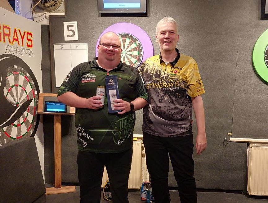 Das Halbfinale sah dann mit Yannik und Marvin zwei Shakespeare-Dartists als Sieger, so dass das Finale zu einer vereinsinternen Angelegenheit wurde.