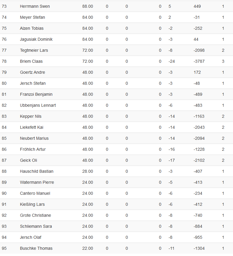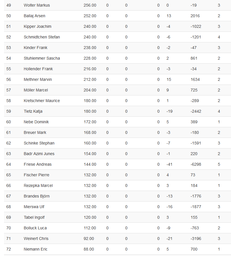 Wie stark das Turnier war zeigte sich hier an den Ausscheidenden: