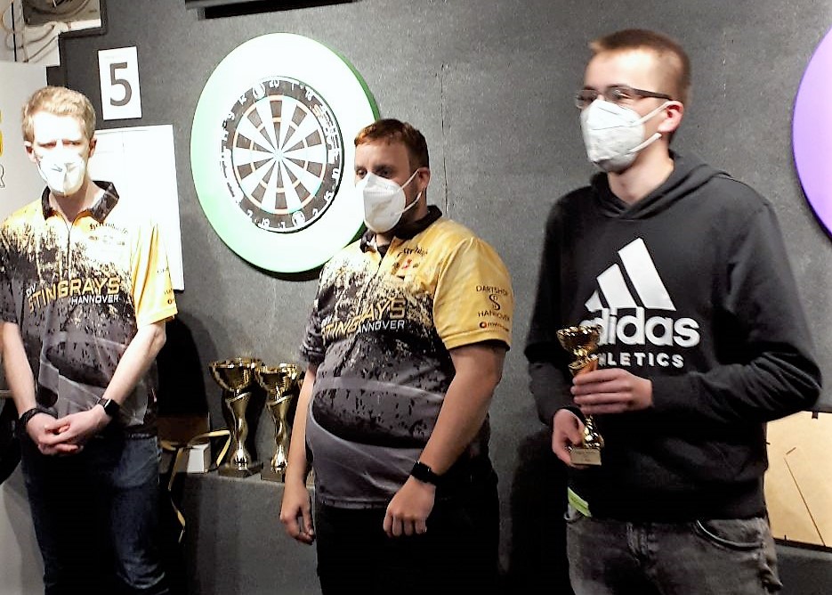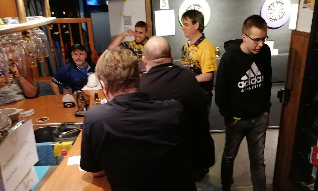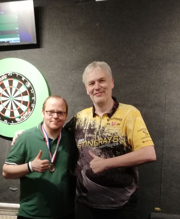Marvin zeigte, neben dem schon erwähnten 170er Check, in der Gruppe ein 167er Bullfinish. Auch bei den Shortlegs hatte Marvin mit acht, sein bester war ein LD12, leicht die Nase vorn, Finn brachte es immerhin auf großartige 7 Lowdarts und zudem drei weitere Highfinish. Niemand ist über die tolle Leistung beider verwundert, spielen sie doch seit langem stabil auf solch hohem Niveau. Ergänzt durch den an diesem Abend abwesenden Leon ein bombastisches Trio der Shakespeare Dartists, dem in Zukunft aufgrund ihres Alters noch einiges mehr zuzutrauen ist.