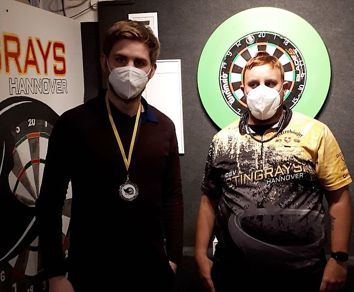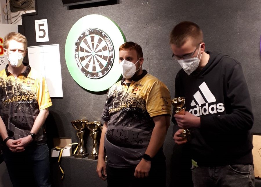 Gestern war es aber Marvin, der wie auch in seinem ersten Finale gegen Tobi vor neun Wochen die Oberhand behielt. Es war ein hochklassiges Spiel beider, nicht nur aufgrund des Bigfish, des 170er Finish von Marvin. Überhaupt geizten beide im Turnier nicht mit Highlights. So checkte Finn gegen Mitja im Achtelfinale die 134 Rest mit 54-Tops-Tops, und im Viertelfinale gegen Steini 137 über 57-Tops-Tops.