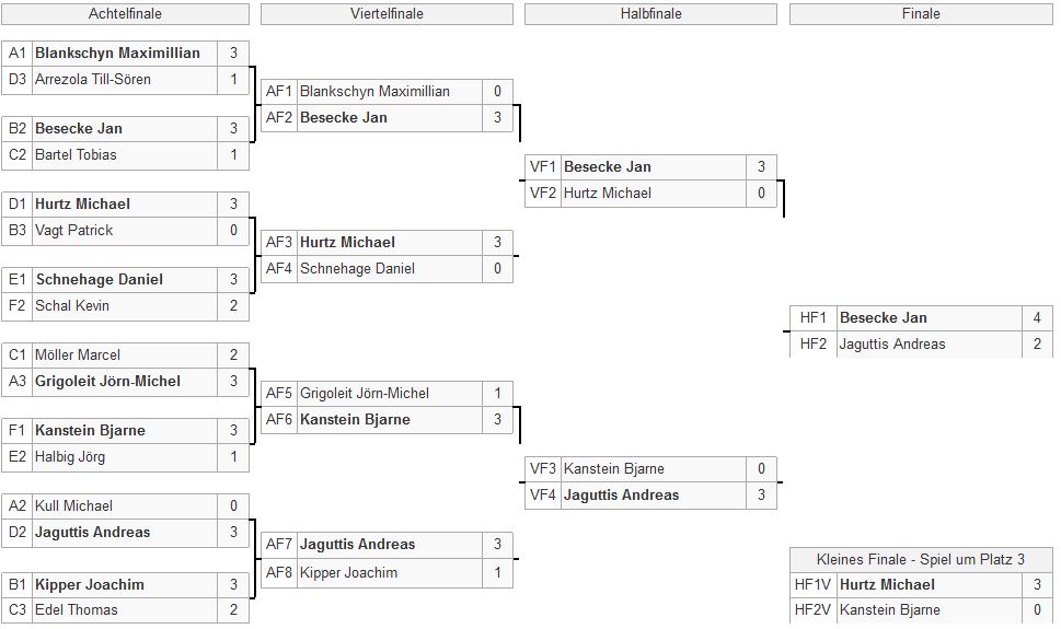 Mit Daniel Schnehage, Max Blankschyn, Yannik Spreen und Andreas Jaguttis mussten direkt vier Titelfavoriten das Handtuch werfen.
