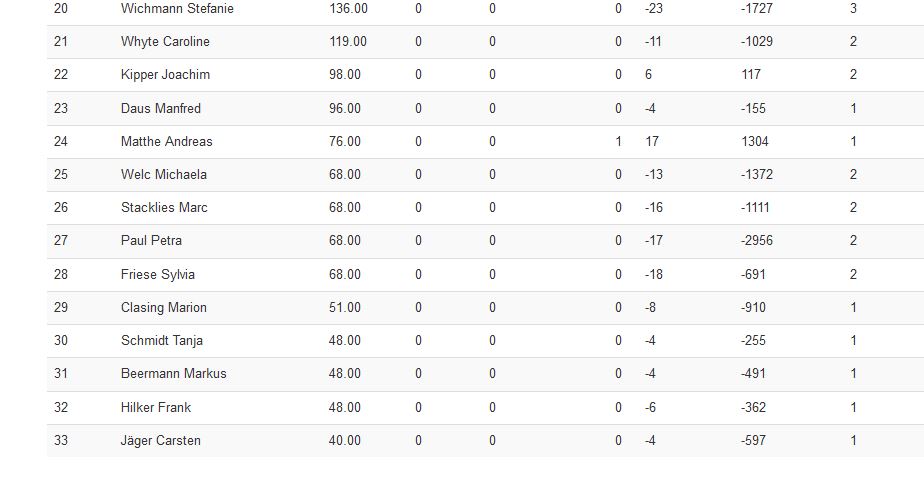 Platz 25 ging an Ulf und Kai sowie Frank und Ulf. Jason und Claas verließen das Turnier mit Platz 17. 👏
