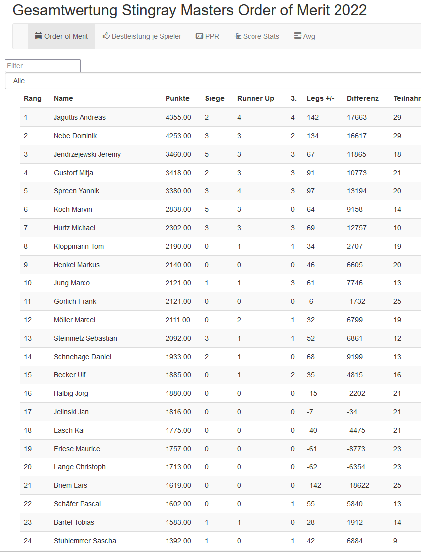 Am 12.10.2022 trafen sich im Rochen erneut 24 Dartspieler um auszumachen, wer das Turnier und somit auch die meisten Punkte für die Qualifikation zum Stingray Masters gewinnt.