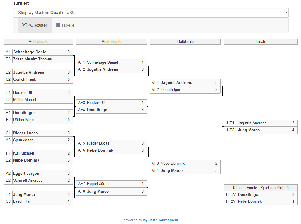 Stark war aber auch der Auftritt von Marcel "Dart Vader" Rezepka, der als aktiver Stingray mal wieder ein Halbfinale erreichte. Dort waren dann allerdings die Körner alle und im Spiel um Platz 3 konnte sich Marcel Möller knapp durchsetzen.💪